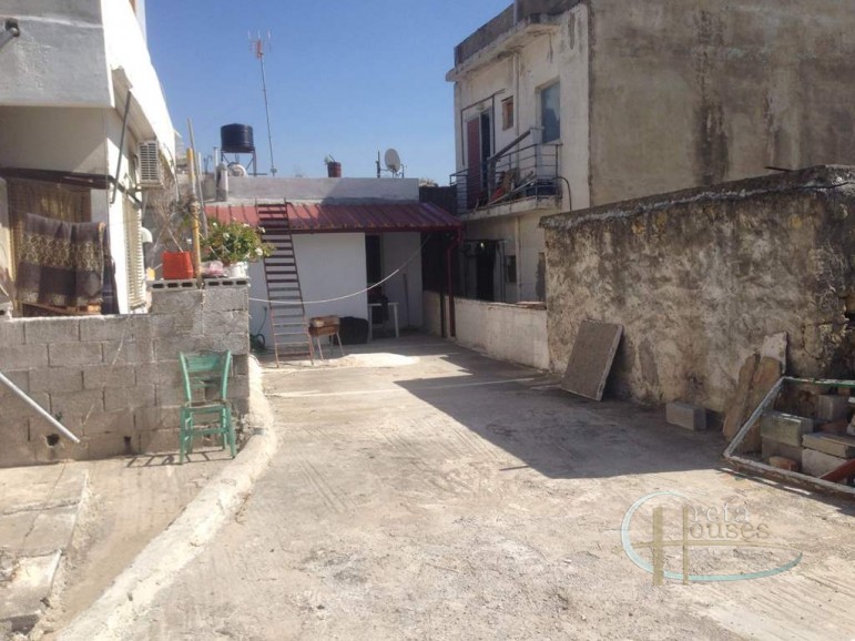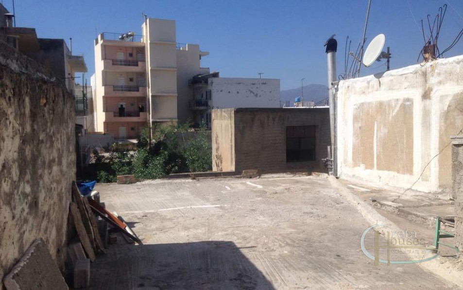 The apartment is on the first floor in a very central location of Timbaki. The apartment is 38sqm while the whole area is 125sqm. It has a kitchen, a bedroom, a bathroom, a small living room and a large terrace. The benefits of this property are initially the open space that exists outside which can be transformed into a lovely terrace and then its location where the owner of the property can go anywhere in the village on foot since everything is within walking distance. The house overlooks Timbaki square which is full of life during the summer.