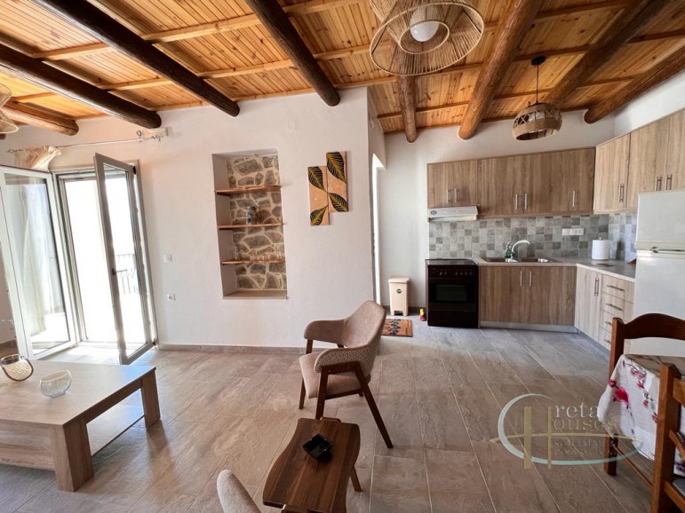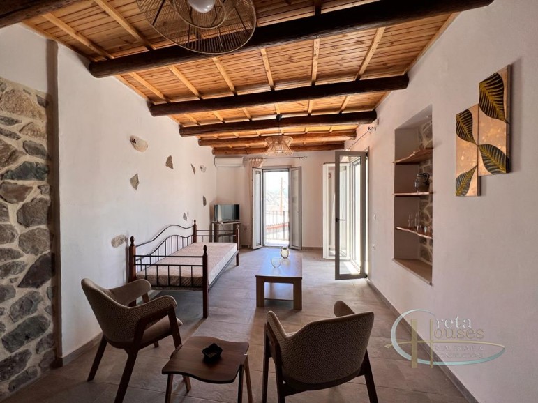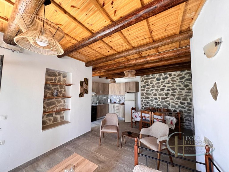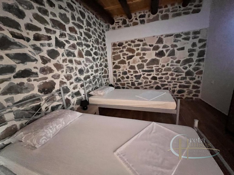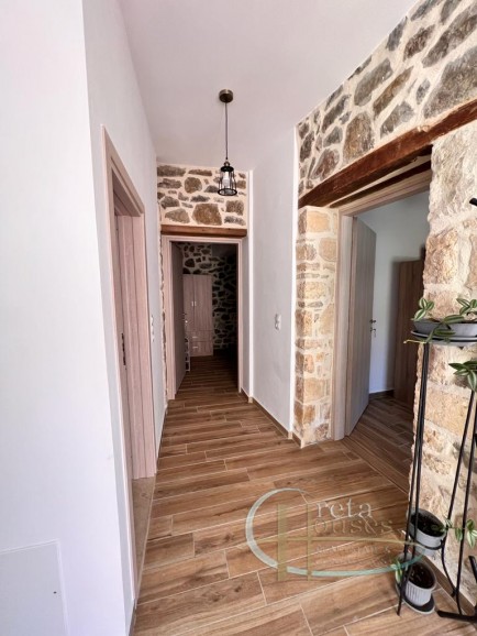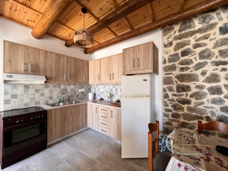 This traditional house in Melambes is a beautiful two-story stone building with a total area of 100 m², combining authentic Cretan architecture with modern amenities. On the ground floor there are two comfortable bedrooms, equipped with air conditioning, as well as an elegant bathroom. The natural stone and wooden beams create a warm, welcoming atmosphere that reflects the tradition of the place. Upstairs, there is a spacious and fully equipped kitchen-living room as well as a second bathroom. The terrace and balconies offer breathtaking views of the mountains, providing peace and contact with nature. There is also a practical laundry room for everyday needs. A house that combines tradition with functionality, in the village of Melambes.
