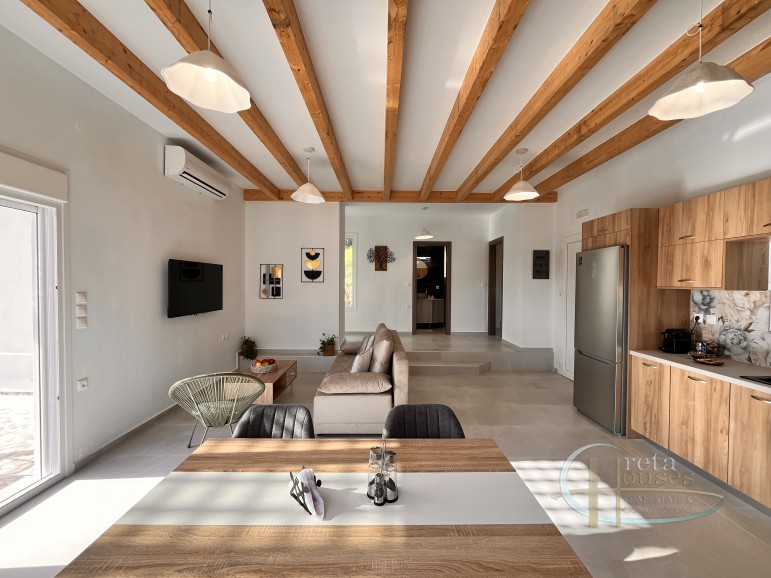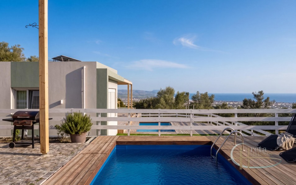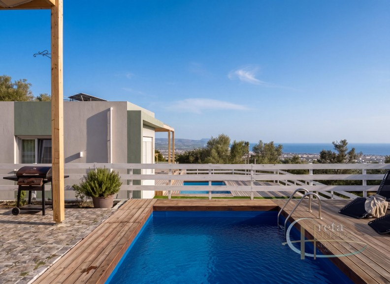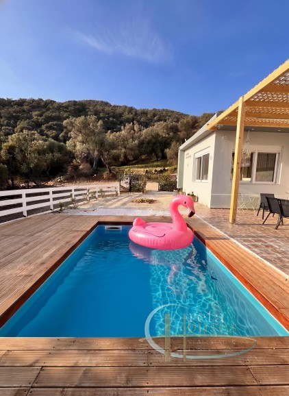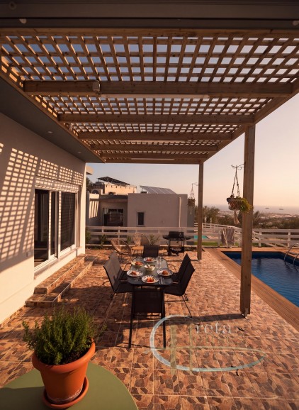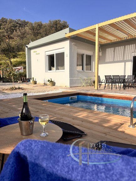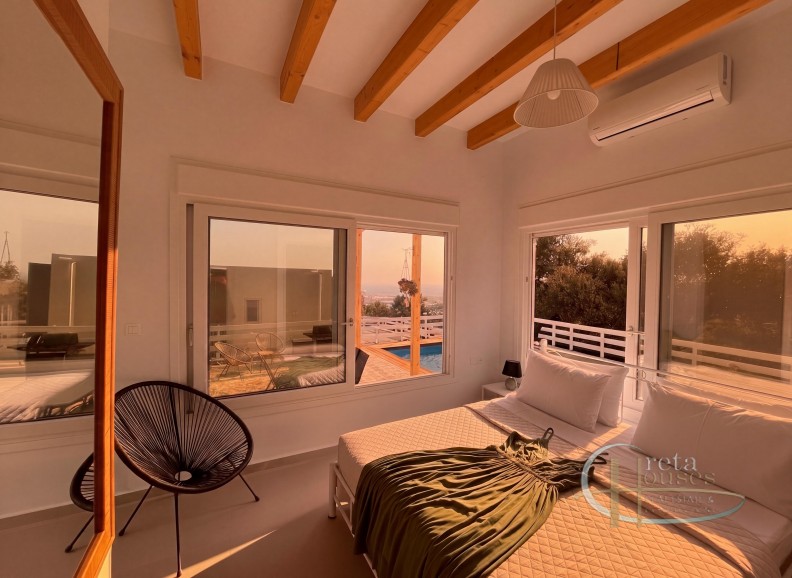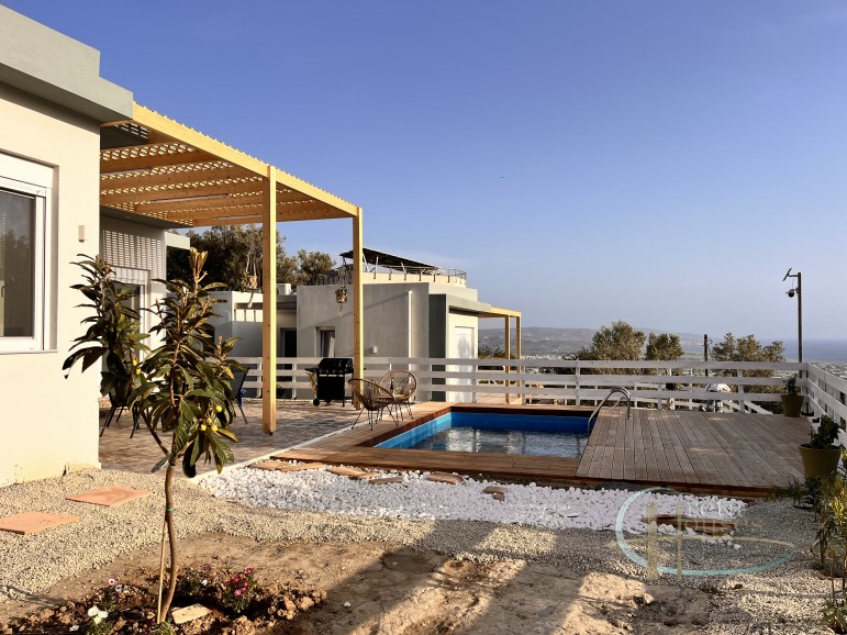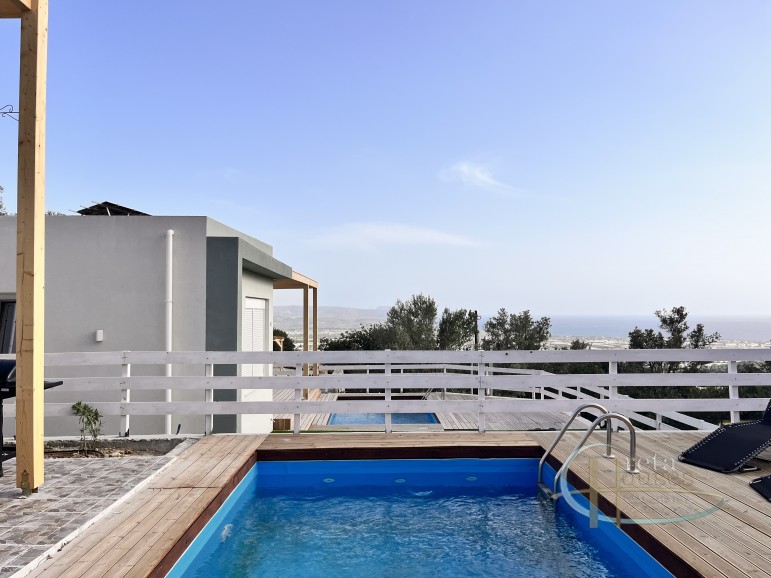 Beautiful modern house located on the outskirts of Klima, offering stunning sea and mountain views. The property features two bedrooms, two bathrooms, and an open-plan kitchen and living area with large openings that seamlessly connect the indoor space to the outdoor swimming pool area. Outside, a pergola provides the perfect setting to relax and enjoy a coffee or a glass of wine while taking in the breathtaking sunset and sea views. The house is sold fully furnished and includes private parking. Each room is equipped with air conditioning for both cooling and heating, ensuring year-round comfort. The property also boasts a spacious outdoor area ideal for entertaining or unwinding in a peaceful setting. Klima is home to two traditional tavernas, while the town of Timbaki is just a few minutes’ drive away, offering additional amenities and services.