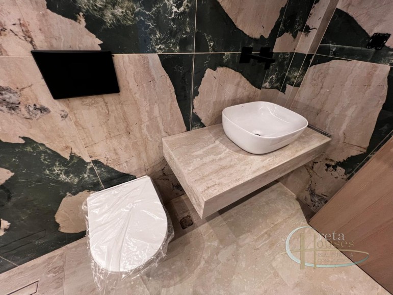 Introducing a stunning, newly constructed detached maisonette spanning 162 sq.m. on a generous 750 sq.m. lot. This luxurious home boasts an expansive open-plan living area that seamlessly integrates the living room, dining room, and kitchen complete with a sleek granite countertop. The residence features three spacious bedrooms equipped with wardrobes, a stylish main bathroom, and an additional guest bathroom. Enjoy modern conveniences such as a solar water heater, heat pump, and multiple outdoor spaces including verandas, balconies, a courtyard, and a garden. Parking is made easy with a designated parking space. Security is a priority with a robust security door and three-phase electricity. Additional highlights include an electric car charging station, triple-glazed aluminum windows with mosquito screens, electric shutters, and a photovoltaic system. For added convenience, a storage room is also included. Plus, this smart home allows you to control its functions directly from your mobile device.
