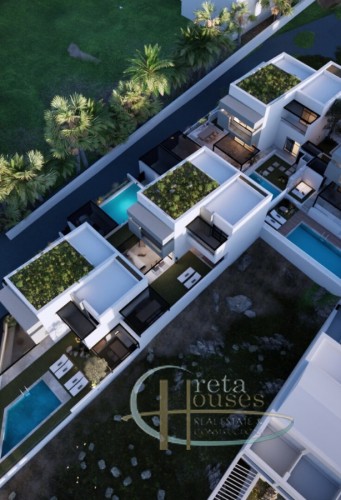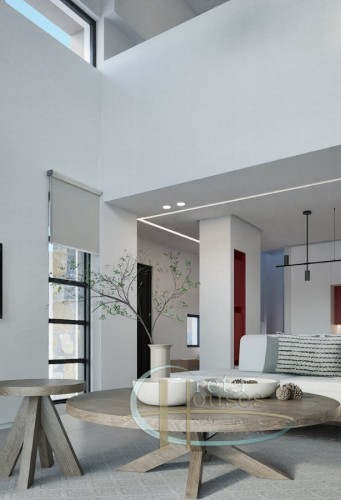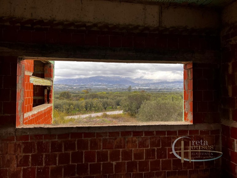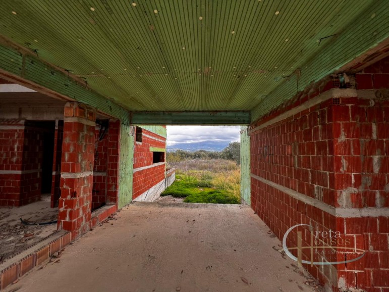This exceptionally designed residence in Petrokefali, South Crete, presents a distinguished investment opportunity or the potential for a bespoke primary dwelling. The luxurious property showcases an attractive, contemporary architectural design and is currently in an advanced stage of completion, offering the purchaser the significant advantage of customizing key finishes, including fenestration, colour schemes, flooring materials (e.g., tiles), and interior furnishings. The compound comprises a principal residence organized as a spacious maisonette with an accessible attic, a completely autonomous guest annex, and a secure, enclosed parking facility, all situated on a substantial plot measuring 2,120 square meters. The grounds are appointed with a 7 \times 4 meter swimming pool featuring an overflow system and generous undeveloped space suitable for personalized configuration. I. Principal Residence Ground Floor The ground level accommodates the main living areas, including a professionally appointed kitchen supplemented by a dedicated private storage/pantry area. An adjacent, comfortable balcony is provided for al fresco dining. The interior features a spacious and sunlit dining area, while the living room is equipped with a fireplace and large-format glazing that affords expansive views of the pool and surrounding area. The enclosed parking facility is also located on this floor, offering direct internal access to the residence. A dedicated boiler room for necessary heating apparatuses is situated adjacent to the parking bay. Provision exists to repurpose the car park into an expanded storage facility or an additional habitable room, if desired. First Floor Access to the first floor is via an internal staircase. The upper landing features an internal balcony providing a visual connection to the dining and living spaces below. This level hosts the master suite, complete with a private water closet (WC) and an integrated dressing room. Additionally, there are two further well-proportioned bedrooms, the main bathroom, dedicated laundry and ironing facilities, and a designated office space. The master bedroom, office, and one secondary bedroom enjoy views overlooking the pool, courtyard, and local settlement. The remaining bedroom offers unimpeded panoramic views across the Messara plain and Mount Psiloritis, extending visual contact from Phaistos to Mires. The internal balcony grants access to an external terrace (positioned above the living room) suitable for various auxiliary uses. Attic / Loft The office provides access to the loft via an internal folding hatch staircase. This versatile space is intended for multi-purpose use and includes an independent WC, benefiting from a 360-degree panoramic outlook. The roof area is fully accessible, making it suitable for photovoltaic system installation or as supplementary functional space. Technical Specifications (Initial) The preliminary design specifies state-of-the-art climate control, including underfloor heating supplied by a heat pump, solar thermal panels, and fan coils. The capacity to modify the designated heating system is available. II. Guest Annex A fully self-contained and autonomous guest house is integrated into the ground floor with its own separate entrance. This annex features one bedroom, a dedicated bathroom, and an additional functional room, with views directed toward the swimming pool and courtyard area. III. Exterior and Plot Configuration The 2,120 sq.m. plot is bound by the main Mires-Petrokefali-Matala road to the north and a local settlement road to the south. Concreting has been finalized for the 7 \times 4 m overflow swimming pool and its associated engine room. Plans include the construction of a bakery and a grill area adjacent to the pool. The grounds feature a mature walnut tree and ample undeveloped space suitable for landscaping with gardens, trees, lawns, or a playground. The north boundary accommodates both the outdoor pedestrian entrance (leading to the building via a corridor) and the external vehicular entrance, which leads to the closed parking via a gently sloped ramp. Significant external space is available for additional vehicle parking.