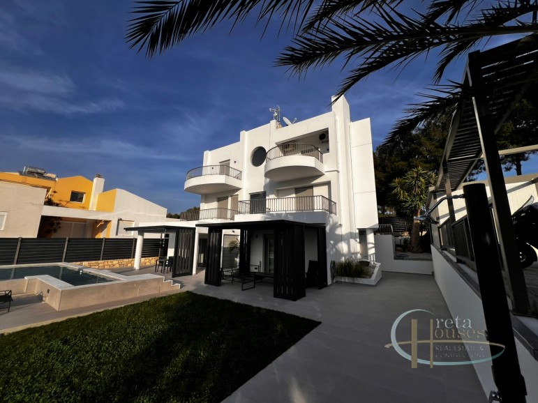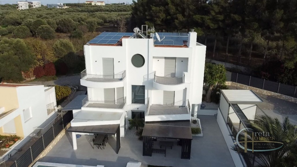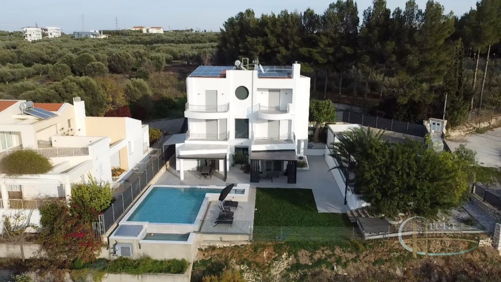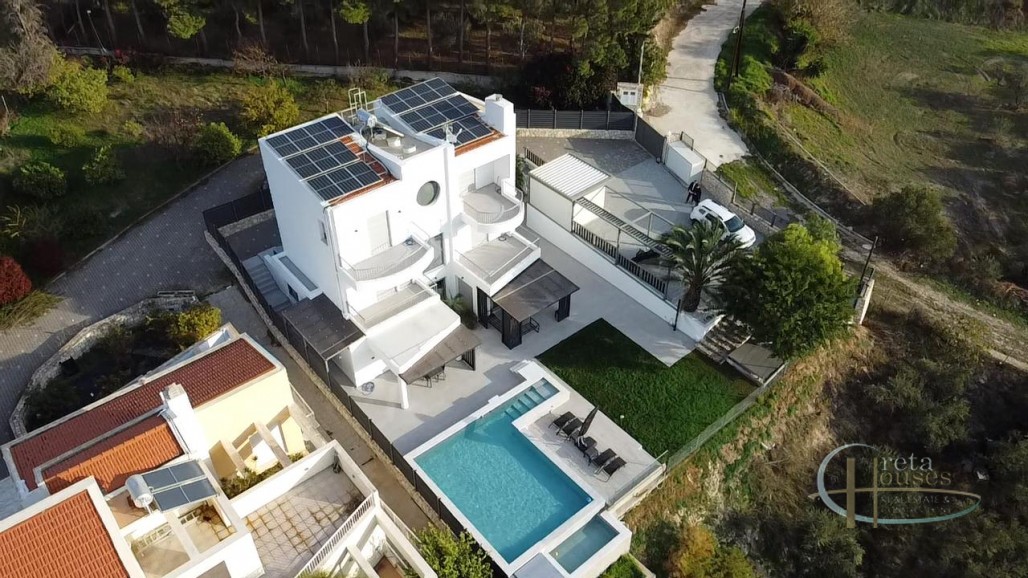 Exclusive Luxury Residence in a Prime Private Location Step into a world of unparalleled luxury and seclusion with this magnificent, architecturally stunning residence, perfectly situated in an upmarket, private enclave. Designed for the discerning individual, this property offers an exceptional lifestyle where superior design meets ultimate comfort. Key Features of this Luxurious Retreat: * Expansive Estate: Sprawling across a generous 2,000 m2 plot, the property ensures complete privacy and tranquility, surrounded by lush, natural scenery. * Grand Residence: The house itself spans an impressive 300 m2 across three meticulously designed floors, offering vast spaces for relaxation and entertaining. * Impeccable Accommodations: Featuring four sophisticated bedrooms and four luxurious bathrooms, every space has been crafted with the highest attention to detail, providing an exclusive sanctuary for residents and guests. * Superior Construction: Built to the highest standards, the excellent construction quality is evident throughout, promising enduring value and timeless elegance. * State-of-the-Art Climate Control: Experience year-round comfort with a high-performance heating and cooling system, utilizing efficient fan coil units and radiators. * Eco-Conscious Luxury: Featuring installed PV (Photovoltaic) panels, this home is an investment in sustainable and modern living. * Outdoor Oasis: The stunning exterior boasts a beautiful, well-maintained garden and a centerpiece heated pool, perfect for year-round enjoyment and sophisticated poolside entertaining. * Convenience: A dedicated parking area ensures ease of access and security. This is more than just a home; it is a private sanctuary built for those who demand the absolute best in location, quality, and lifestyle. This exceptional property represents a rare opportunity to acquire a true gem in a sought-after, upscale setting. Would you like me to tailor this description further by highlighting specific aspects, such as the privacy or the modern amenities?