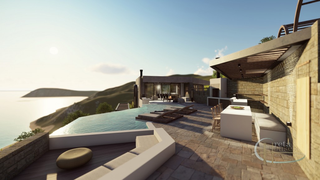 Discover a rare opportunity to build a private sea-view villa or small boutique hotel in one of the most unspoiled areas of South Crete. The Grove Crete project comes with a fully issued and valid building permit—one of the last permits granted in the region due to recent changes in Greek building law. This makes the project exceptionally valuable: buyers avoid the long waiting times, uncertainties, and shifting regulations that currently make new permits difficult to obtain. The property is based on an award-winning, Passive House–designed concept. It enjoys a permanently unobstructed panoramic view over the Libyan Sea. Because of the land’s topography and protected surroundings, no construction can ever rise in front of it. The setting is quiet and deeply relaxing, with nothing but the soft sound of the sea, the wind, and—one day—your pool. While the architectural concept and main structural parameters are already approved, the project still allows full freedom to make it your own. Buyers can choose materials, colours, finishes, interior style, and landscaping, shaping the villa according to their personal vision—without the stress of navigating the Greek permitting system. Located nearby some of South Crete’s most beautiful beaches such as Prasonissi, Agios Pavlos and Triopetra, the plot combines privacy with easy access to nature, swimming coves, tavernas, and scenic walking paths. Whether you envision a serene private home or a boutique-style luxury retreat for family, friends, or paying guests, this ready-to-build project offers a secure and flexible foundation. A unique blend of legal certainty, design freedom, and breathtaking natural beauty—a combination that is almost impossible to find in today’s market. Property Highlights: - Fully approved building permit – one of the last issued in the region - Passive House–designed project, engineered for ultra-low energy use - Winner of a Certificate of Excellence from the GreenTecLab competition (European Climate Initiative) - Uninterrupted sea views guaranteed by protected topography - Quiet, natural setting – only the sound of the sea, wind, and pool - Plot size: approx. 4,100 m² - 230 m² interior space across two levels - Ground floor: Open living and dining room, guest toilets, large kitchen, indoor olive tree integrared into the facade - Lower floor: 4 spacious private rooms with private pool - Outside: Spacious terrace, infinity pool with bar & bbq, sunken lounge with fire pit, staircase to yoga/multipurpose platform - Approved villa design with flexibility for materials, colors, and finishes - Legal certainty in a volatile permitting environment - Ideal for a private residence or small retreat - Short drive to some of South Crete’s most beautiful beaches and coves - Road access and utilities prepared (adjust depending on final details) Advantages for Buyers: - Avoid the long delays and risks of obtaining a new building license - Customize the interior and exterior to your personal style - Prime location in an area with limited future building opportunities - Strong value appreciation potential due to permit scarcity and growing popularity among visitors and investors