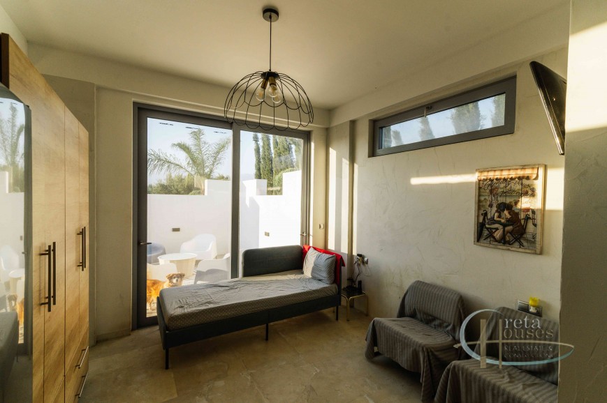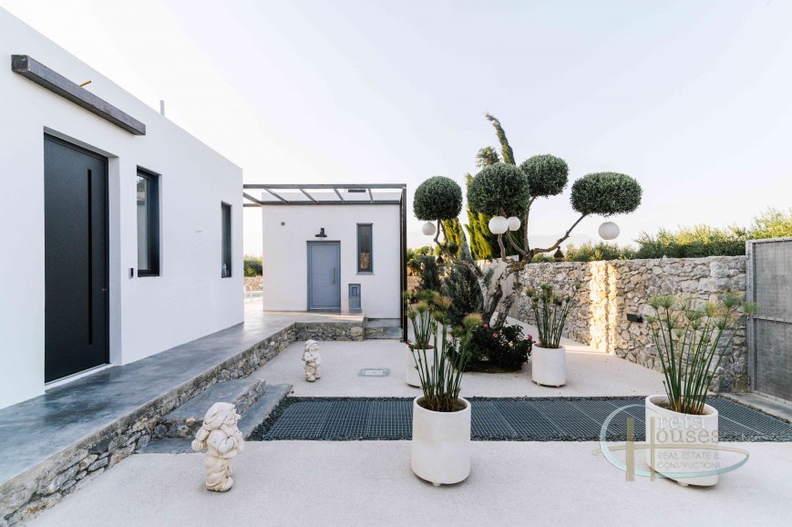 A unique luxury villa is offered for sale in an exceptional location in Petrokephali, set in a quiet and beautiful neighborhood with unobstructed mountain views and lush green surroundings. The property consists of: Main villa: 135 sqm Guest house: 26 sqm Garage converted into gym / playroom Private swimming pool Property Details Main Villa (135 sqm): Open-plan kitchen, living room, and dining area One bedroom with en-suite bathroom, jacuzzi, and fireplace Additional sitting area within the bedroom Extra bathroom/WC Laundry room Attic (15 sqm) with access to a roof garden Guest House (26 sqm): Open-plan living area with kitchen Separate bathroom/WC Outdoor Features Large pergola with BBQ and wood-fired oven Second pergola connecting the two houses Spacious landscaped yard with a wide variety of trees and plants, including palm trees, rose bushes, cypress trees, bonsai, and more Additional Features Main entrance with lighting Smart entrance door with fingerprint access, keypad, and Wi-Fi connectivity This exceptional property is ideal for permanent residence, holiday home, or investment opportunity, combining luxury, privacy, and natural beauty.